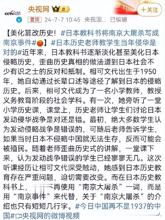 这种借着教育系统给青少年灌输错误史观的操作,直接彻底扭曲了日本民众的历史认知。