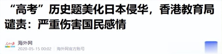 海外网官方账号——“高考”历史题美化日本侵华,香港教育局谴责:严重伤害国民感情